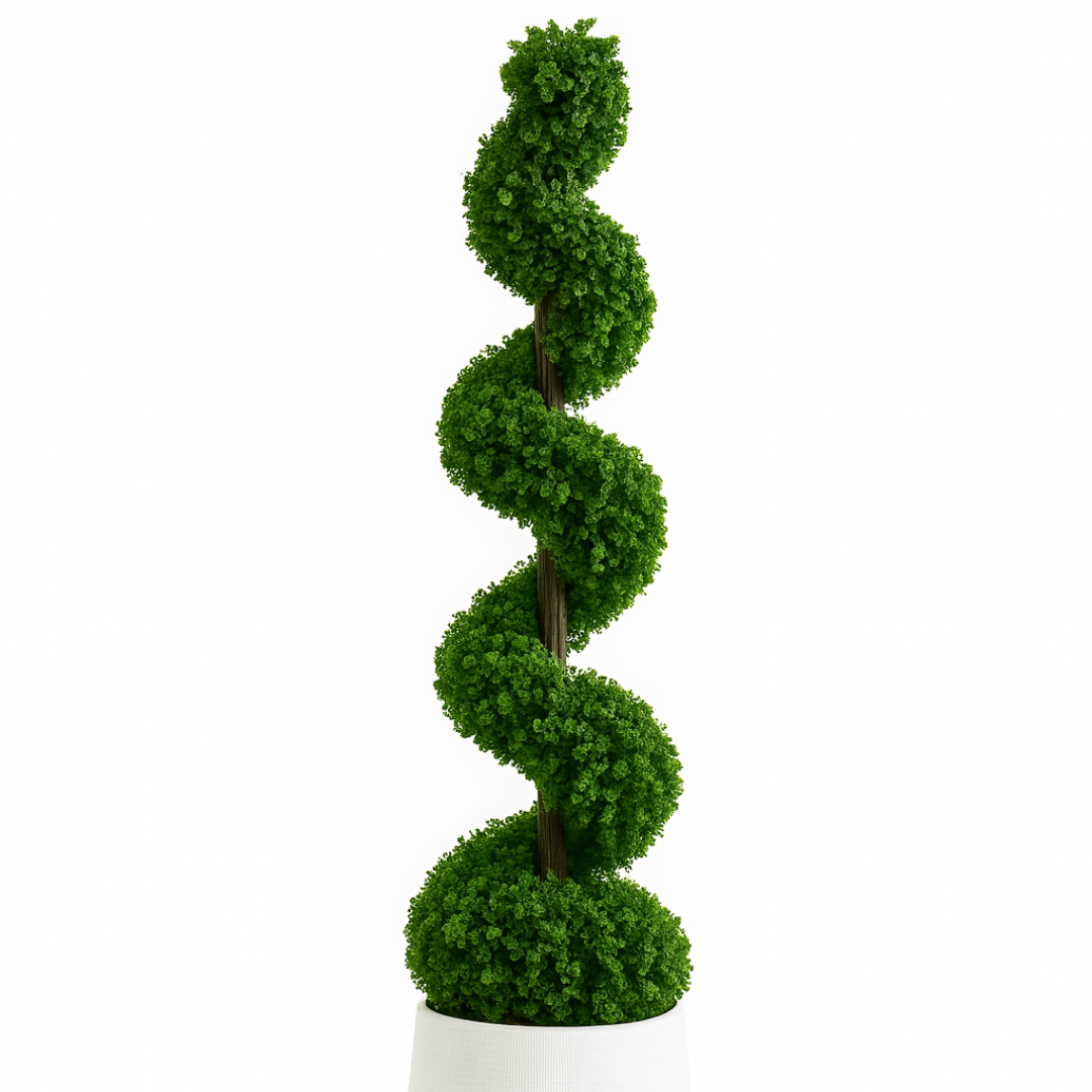 • SUITABLE FOR INDOOR & OUTDOOR USE: Made using premium UV-resistant materials, this artificial spiral topiary tree maintains its vibrant green color for years, even when placed outdoors in sunlight, making it ideal for gardens, patios, terraces, and entryways.