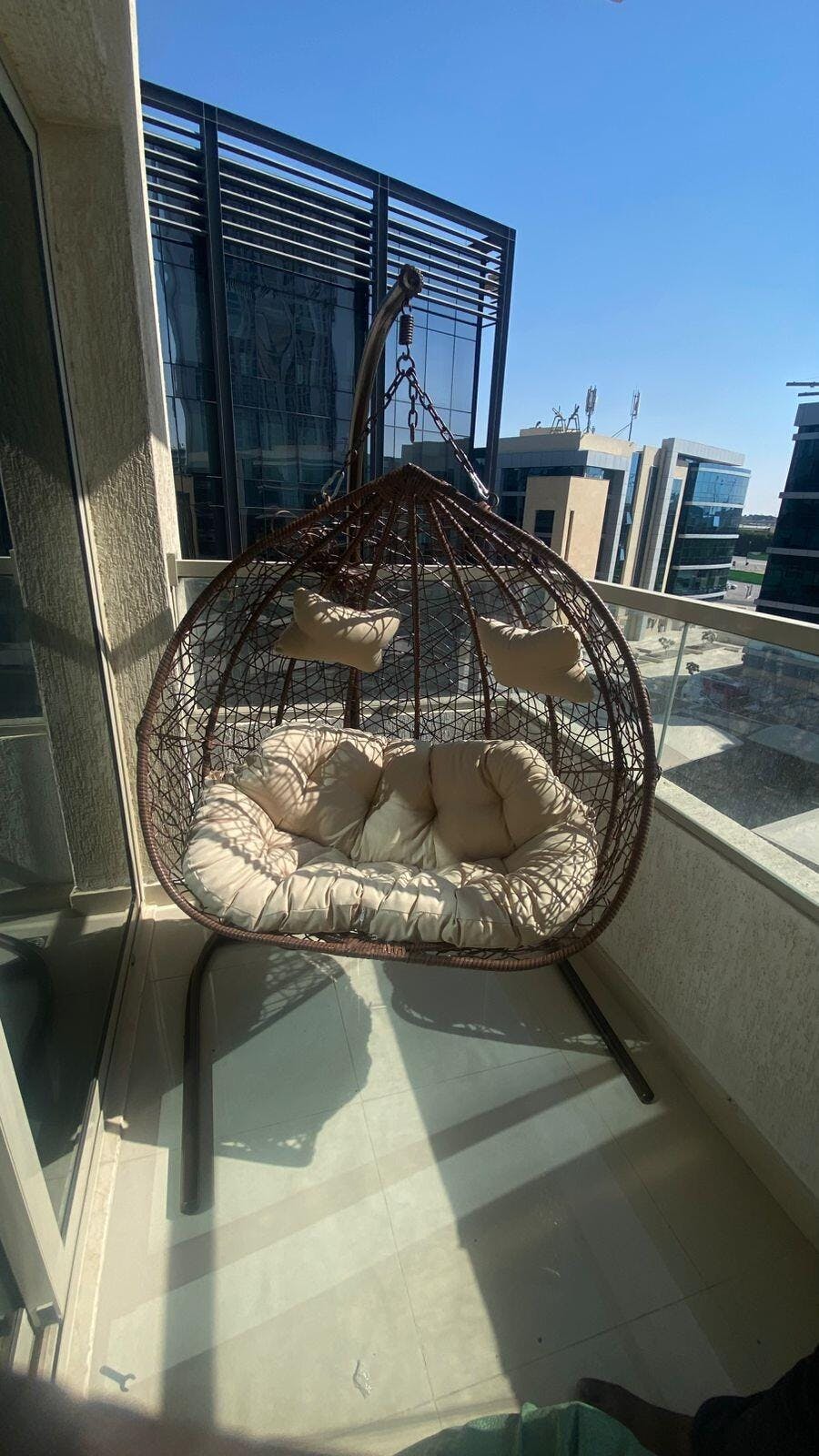 I bought this hanging egg swing chair for my balcony / garden — and I absolutely love it. The woven wicker‑style basket looks elegant and gives a cozy, cocoon‑like feel. The included cushion is thick and comfy, making it ideal for reading, relaxing or afternoon naps. The metal stand feels sturdy and — with proper assembly — it holds up well even when you gently swing. I often sit there with a book and a cup of tea; it’s become my favourite spot for downtime. Indoors or outdoors (patio, balcony, garden), it gives a nice, relaxing vibe.