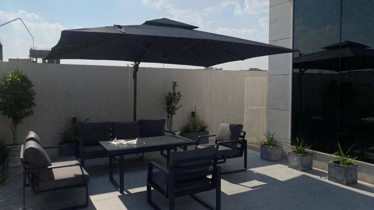 يتيح لك المقبض الدوار المبتكر تعديل زاوية المظلة بسهولة، مما يضمن لك ظلًا مثاليًا طوال اليوم. توفر المظلة المقاومة للأشعة فوق البنفسجية حماية ممتازة من الشمس، مما يجعلها إضافة مثالية لمجموعة أثاثك الخارجي.