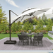 قم بترقية مساحتك الخارجية بمظلة الحديقة الأنيقة المصنوعة من الألومنيوم والقابلة للالتواء. تم تصميم هذه المظلة بتصميم ملتوي فريد من نوعه وتتميز بإطار من الألومنيوم المتين، وهي عملية وجذابة بصريًا. يسمح المقبض الدوار بالتعديل السهل لتوفير الظل بالضبط حيث تحتاج إليه. تضمن المظلة المقاومة للأشعة فوق البنفسجية حماية طويلة الأمد من أشعة الشمس الضارة، بينما توفر القاعدة المائية الثبات حتى في الأيام العاصفة.