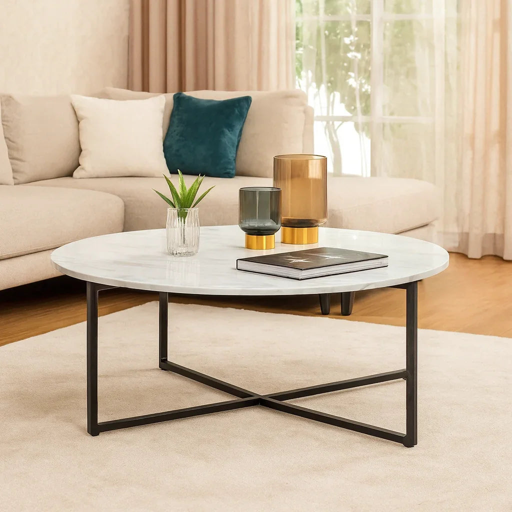 Transform your living space with the Wooden Twist Modern Round Coffee Table Set. Featuring a chic combination of a sleek marble top and a sturdy metal base, this contemporary coffee table set seamlessly blends elegance with functionality. The stylish white and black design complements any decor, making it an ideal centerpiece for your living room. The tables offer a space-saving solution, allowing you to easily arrange and rearrange as needed.
