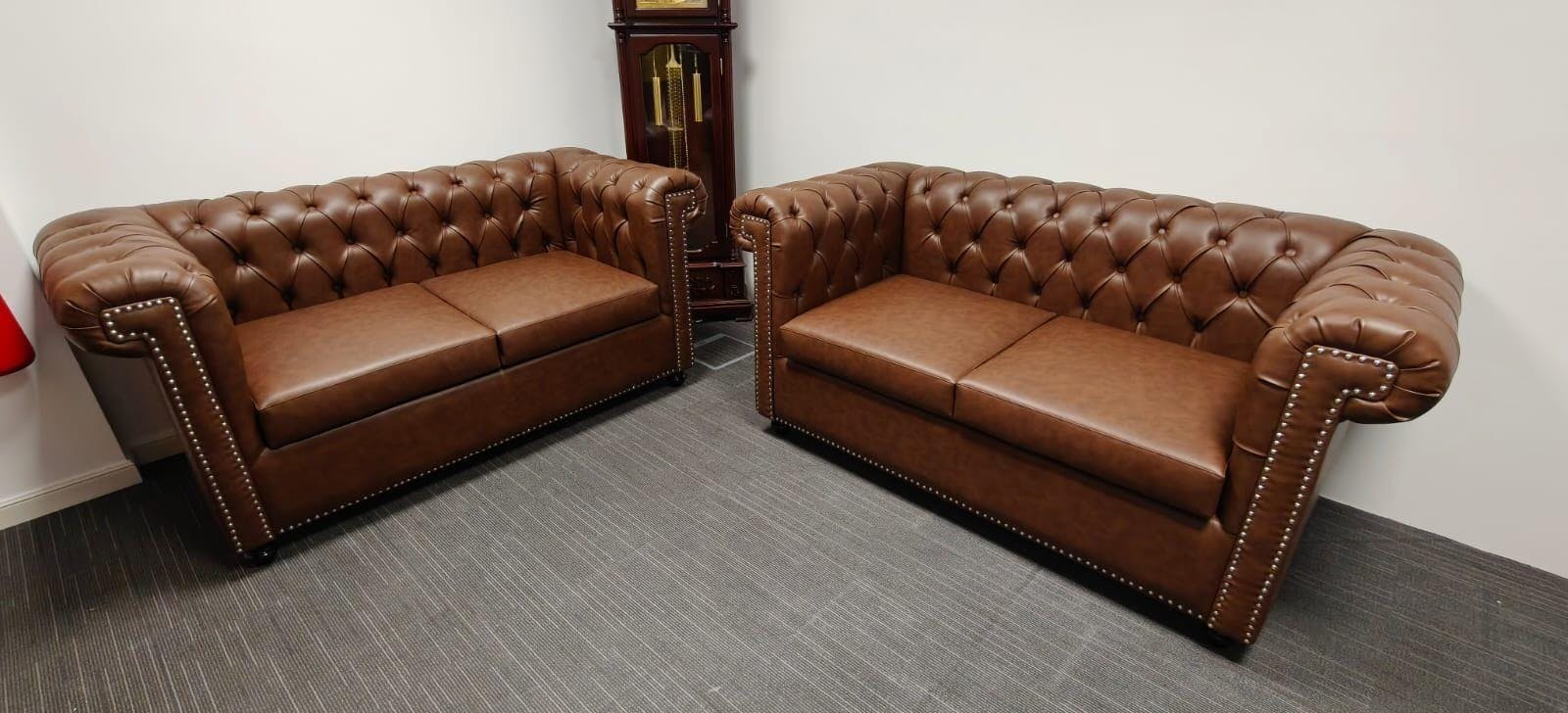 Introducing the Wooden Twist Greek Button Tufted Loveseat, a sophisticated blend of classic design and modern craftsmanship. This 2-seater sofa is a perfect addition to your living room, bedroom, or office lounge, offering both style and functionality. With its distinctive button-tufted backrest, nailhead trim accents, and soft leatherette upholstery, this loveseat is a timeless centerpiece that enhances the aesthetics of any room.