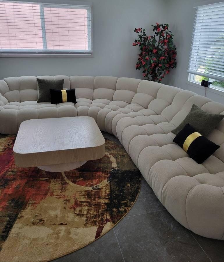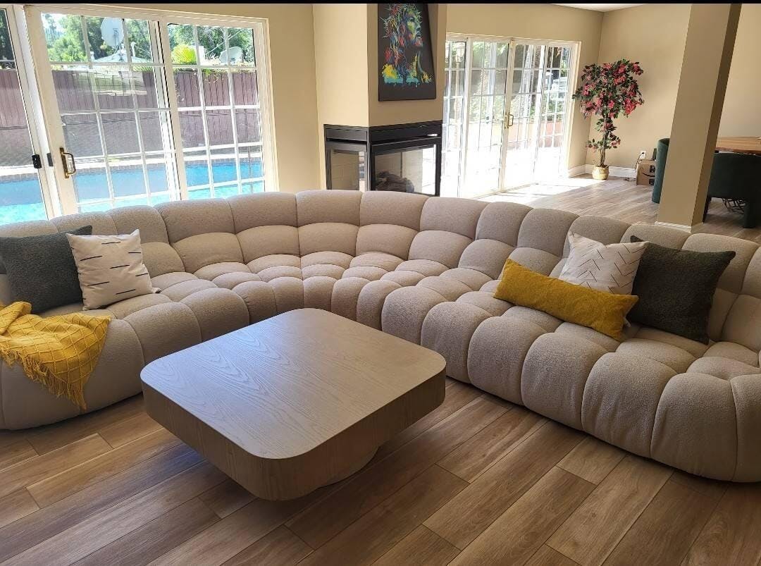 “I couldn’t be happier with this sofa. The curved design is so unique and adds a luxurious feel to my living room. The soft boucle-like fabric feels amazing and is cozy without getting too hot. It comfortably seats my entire family, and we’ve already had multiple movie nights on it. Highly recommend!”