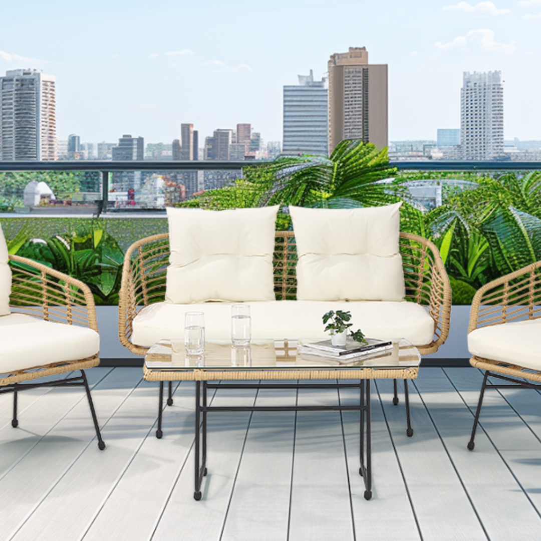 Transform your outdoor living area with the boho patio furniture set, creating a charming atmosphere perfect for relaxation and entertainment. With the porch furniture conversation set, enjoy drinks with friends or engage in heartwarming conversations with loved ones in this welcoming environment.